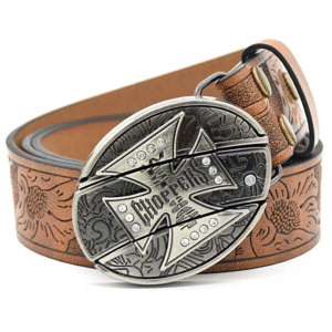 Belt Buckle Knife-Large Cross Knife Buckle Embossed Brown